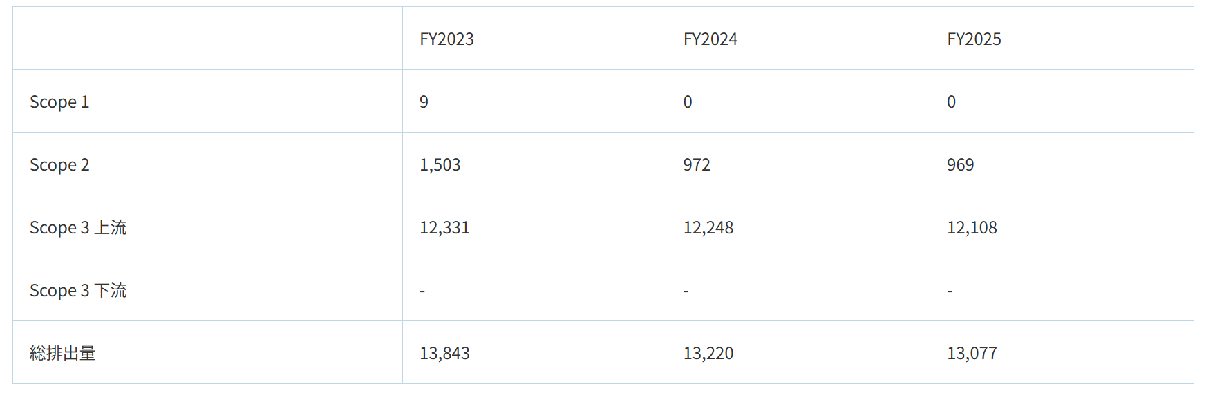 シミックの直近3か年のGHG排出量は以下の通りです。